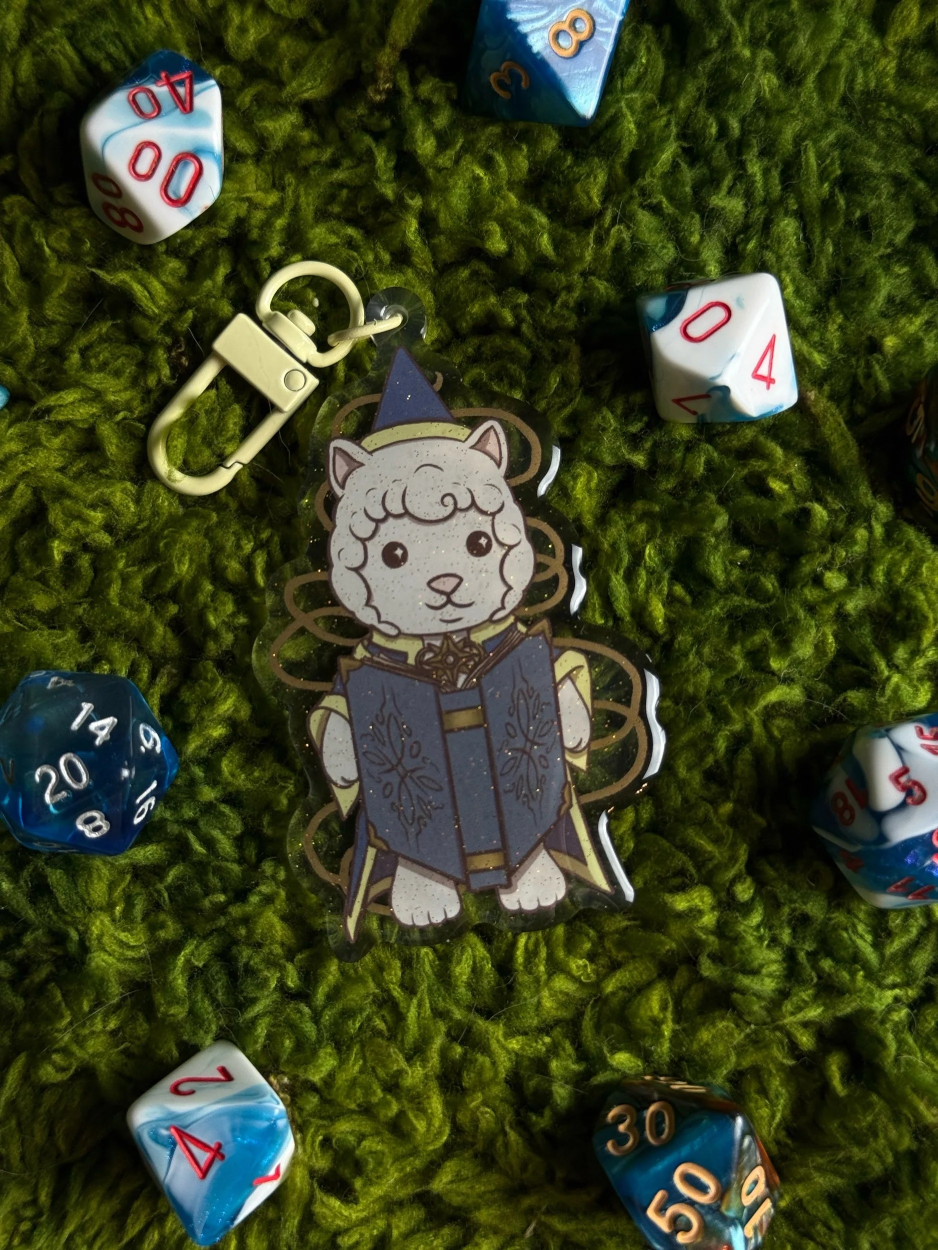 Each keychain is roughly 3” tall with printing on both sides and glitter epoxy on the front. Each is hand drawn and based on the critters I created! I hope you see many adventures together!