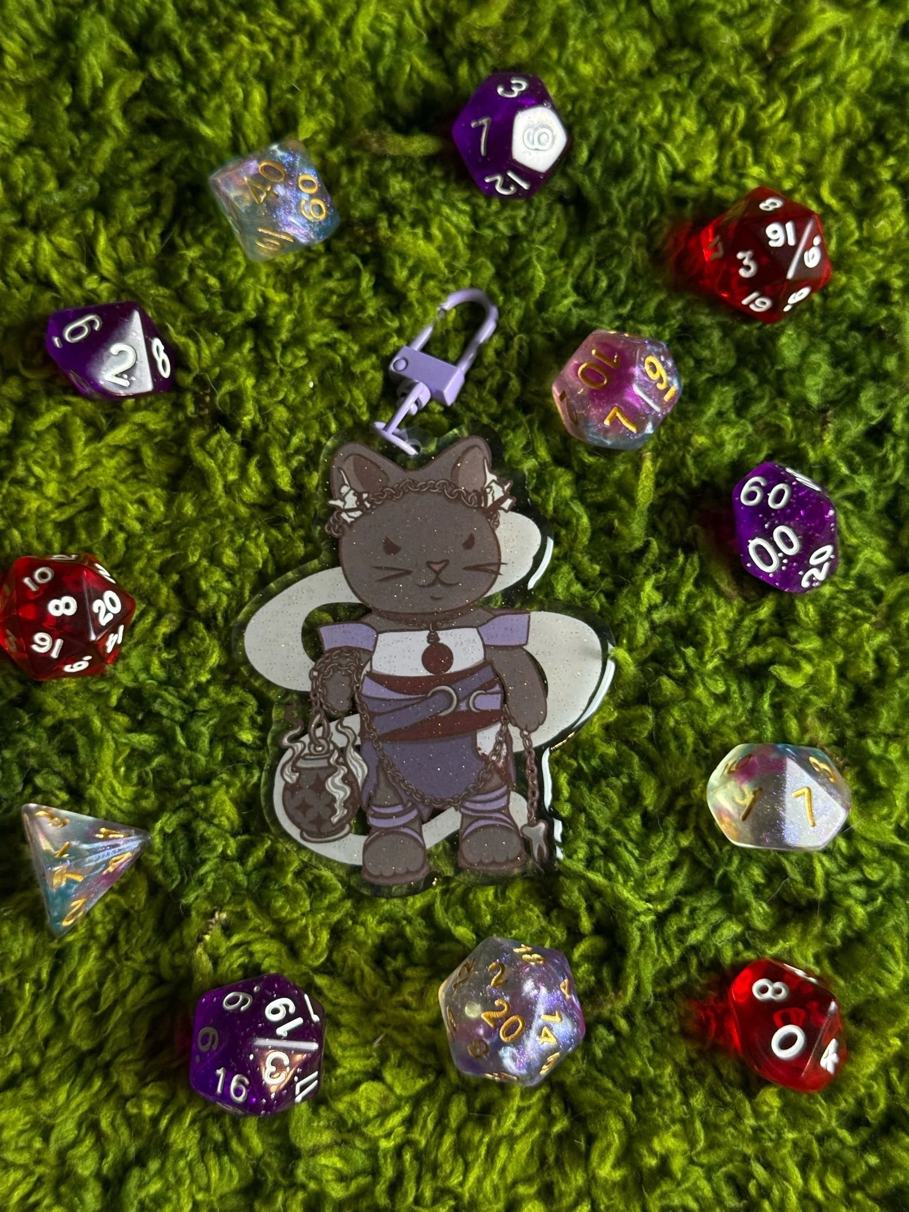 Each keychain is roughly 3” tall with printing on both sides and glitter epoxy on the front. Each is hand drawn and based on the critters I created! I hope you see many adventures together!