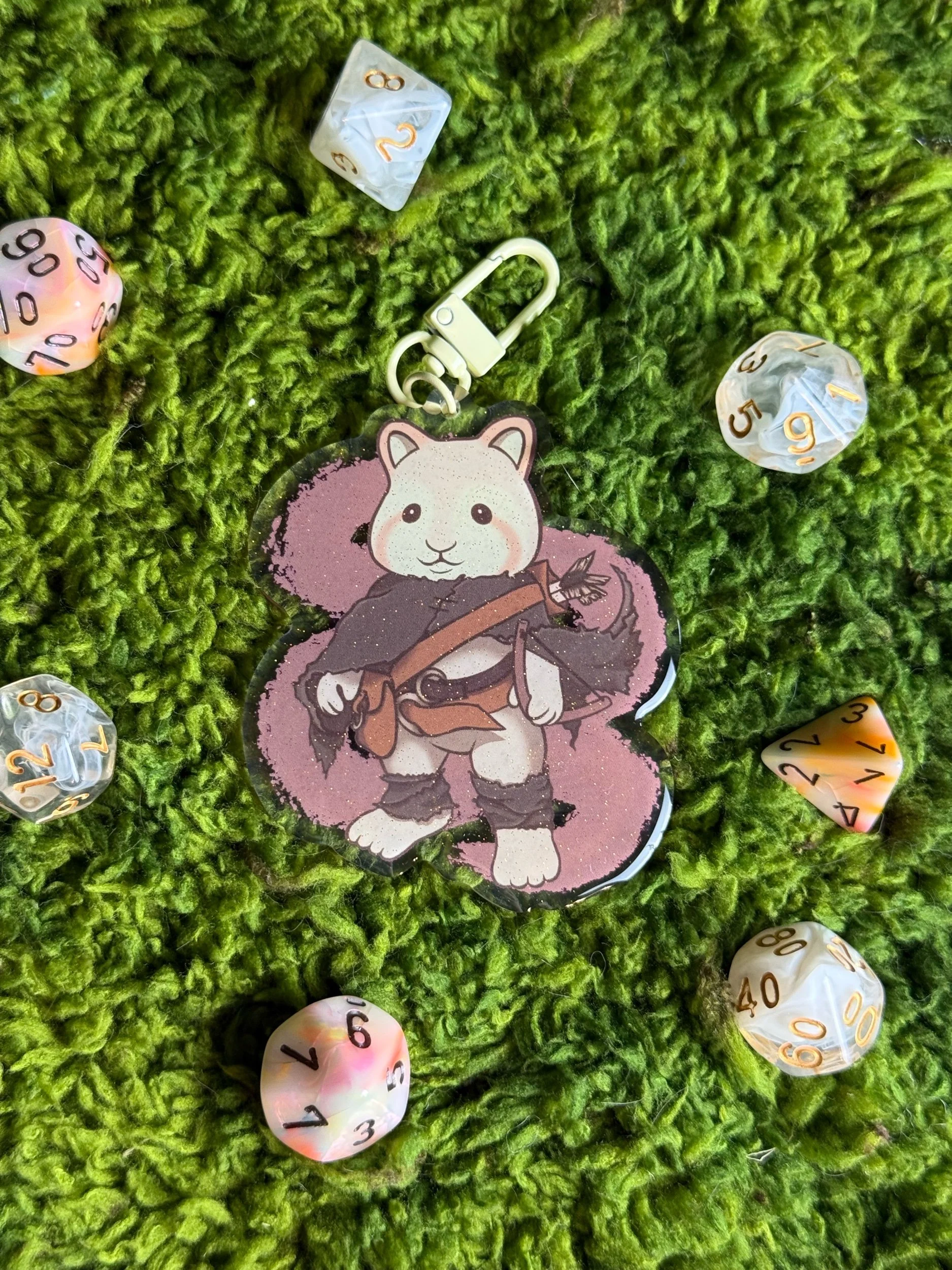 Each keychain is roughly 3” tall with printing on both sides and glitter epoxy on the front. Each is hand drawn and based on the critters I created! I hope you see many adventures together!
